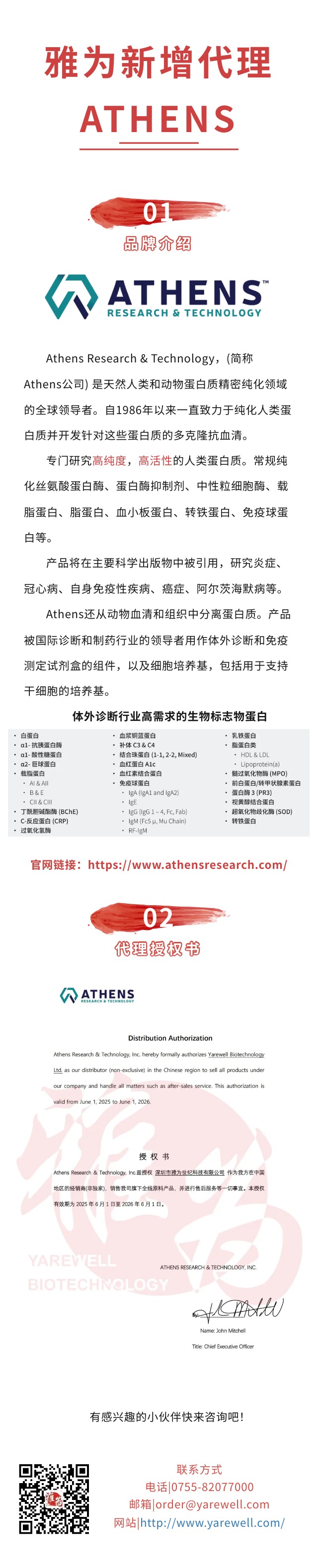 雅为代理新成员:学术型天然蛋白专家Athens!