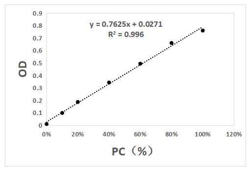 - 验证结果显示,采用本产品配置的试剂,蛋白C浓度与吸光度OD值有较好的线性关性。