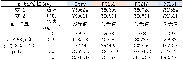 p-tau抗原货号YA0258为tau441,经GSK-3β酶磷酸化,已验证确认p-tau181,p-tau217,p-tau231位点磷酸化,其他可能磷酸化位点尚未确认,经测试磷酸化效率高,抗原效价高。