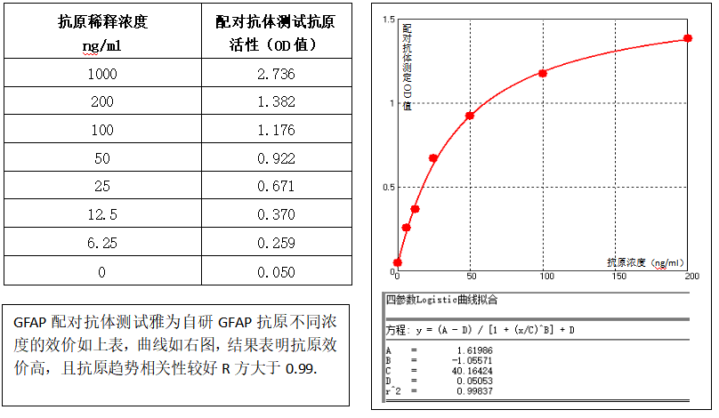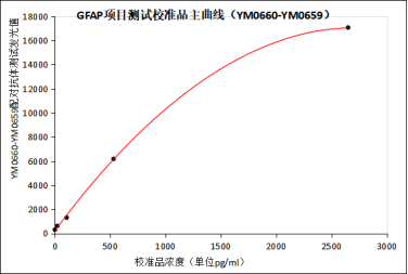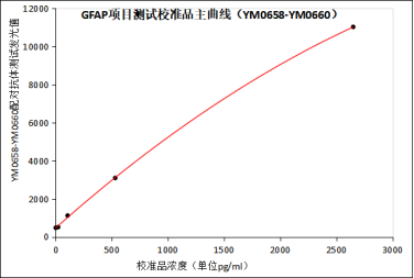 GFAP项目配对抗体(YM0660/YM0658-YM0659,YM0658-YM0660)测试赋值校准品有较好的线性,该项目空白检出限浓度为1.41pg/ml,灵敏度及特异性均能满足项目需求。